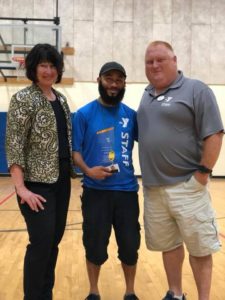 Phil Ashley, of the Family Y, was presented the Youth Development Champion Award by Jeanine Achin (left), COO of the YMCA of Pawtucket, and Sean Cassidy (right), Senior Program Director of the Pawtucket Family YMCA.